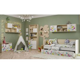 [name] => Шкаф под кровать второго яруса Смайли (Зеленый/корпус Клен)