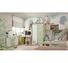 Сочный зеленый, освежающий белый и теплый бежевый – сочетание этих цветов поможет создать уют и веселое настроение в комнате ребенка. В этом ко..