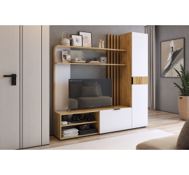Ключевые элементы модульной гостиной включают в себя шкафы для хранения, полки, тумбы под ТВ, витрины, комоды и стеллажи. Каждый из этих модулей выполняет определенную функцию и может быть адаптирован под конкретные нужды хозяев. Например, шкафы и комоды отлично подходят для хранения одежды, постельных принадлежностей и других вещей, необходимых в быту. Тумбы под ТВ предназначены не только для размещения телевизора, но и для удобного хранения мультимедийных устройств и аксессуаров. Витрины с прозрачными дверцами идеально подойдут для демонстрации красивой посуды или сувениров, а стеллажи и полки предоставят место для книг и декоративных элементов.