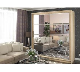 Каркас вмещает 2 выдвижных ящика, штангу для одежды и много полок. Лакобель на створках подчеркнет ваш изысканный вкус при выборе мебели.