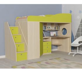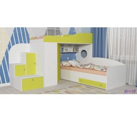[name] => Кровать-чердак Кадет-2 угловая Белое дерево/Лайм