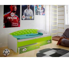 [name] => Кровать Софа-8 с мягкой спинкой фотопечать Футбол (900х1900) Белый/Лайм